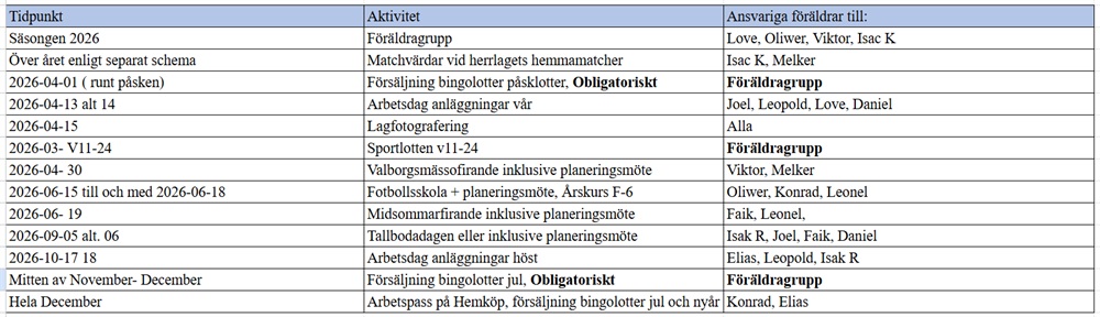 Hela dokumentet är uppladdat under dokument, årsplanering 2026 på lagets sida.